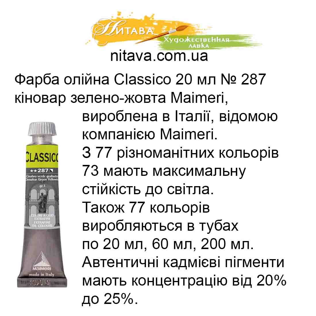 Фарба масляна Maimeri Classico 20 мл Киноварь зелено-жовта 287
