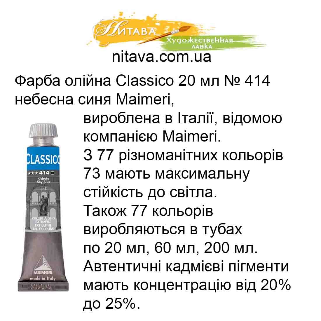 Фарба масляна Maimeri Classico 20 мл Небесний синій 414