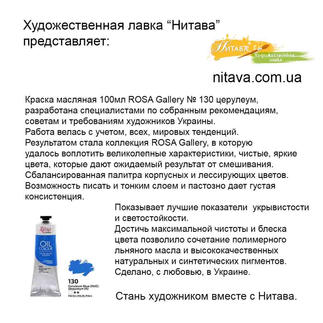 Краска масляная 100мл ROSA Gallery № 130 церулеум, разработана специалистами по собранным рекомендациям, советам и требованиям художников Украины.