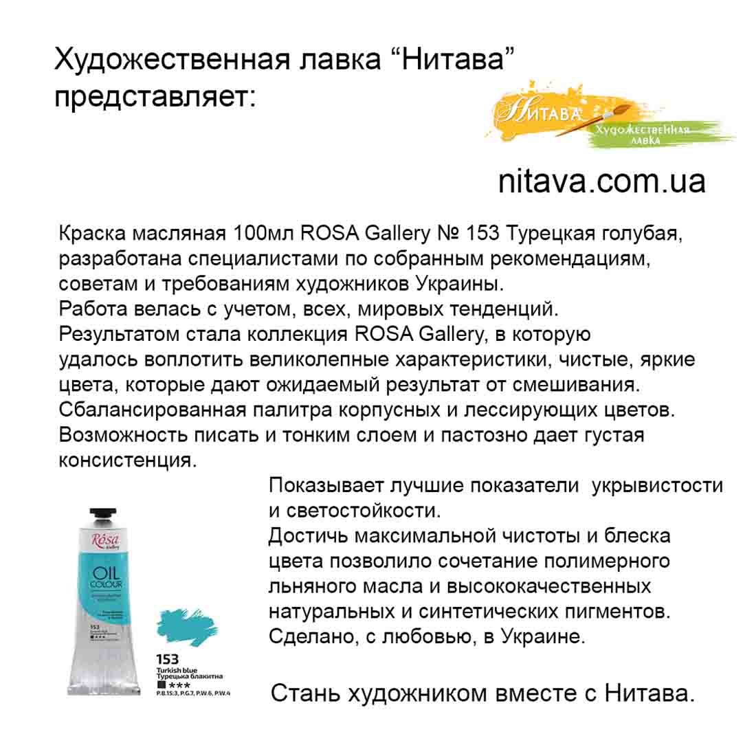 Краска масляная 100мл ROSA Gallery № 153 Турецкая голубая, разработана специалистами по собранным рекомендациям, советам и требованиям художников Украины.