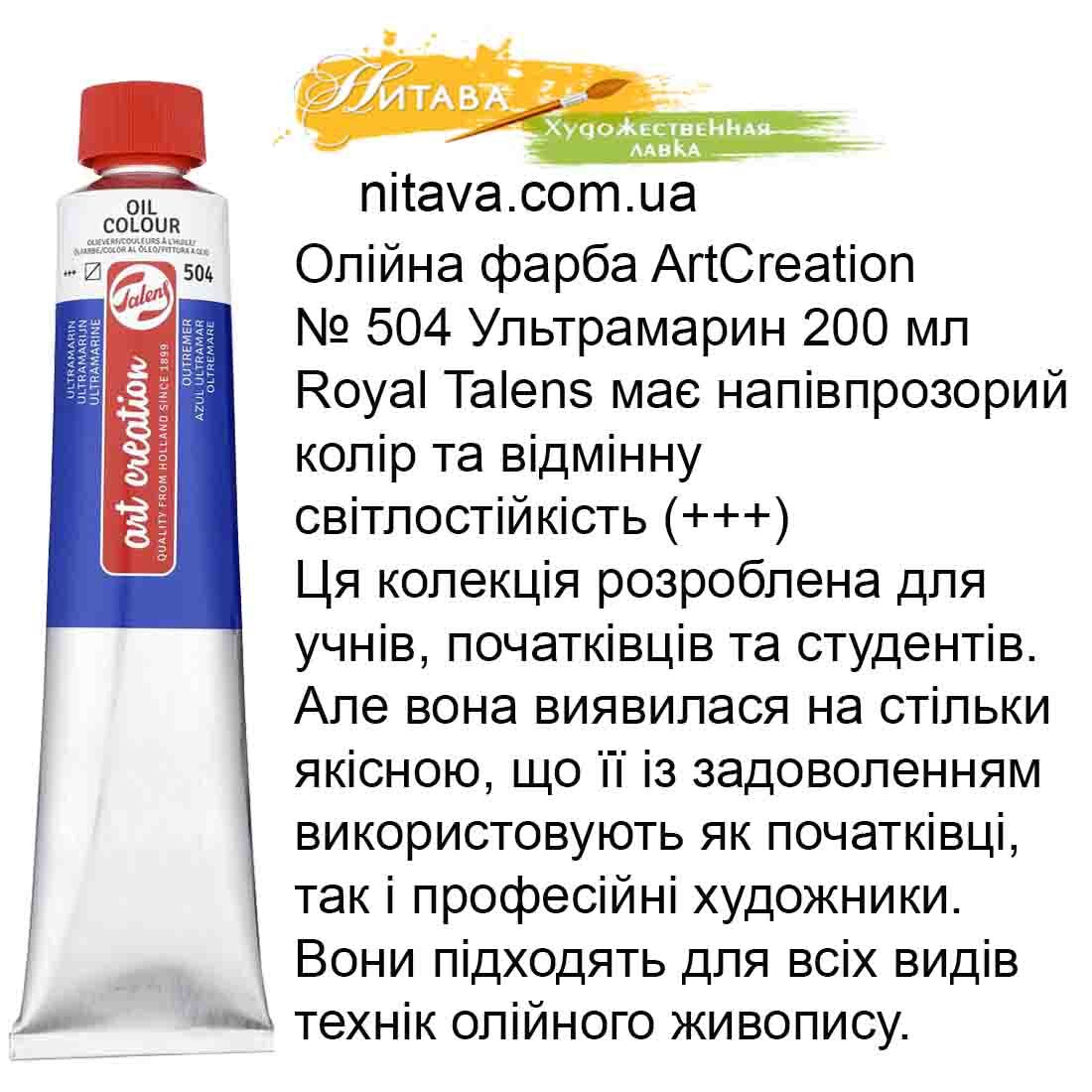Олійна фарба ArtCreation № 504 Ультрамарин 200 мл Royal Talens