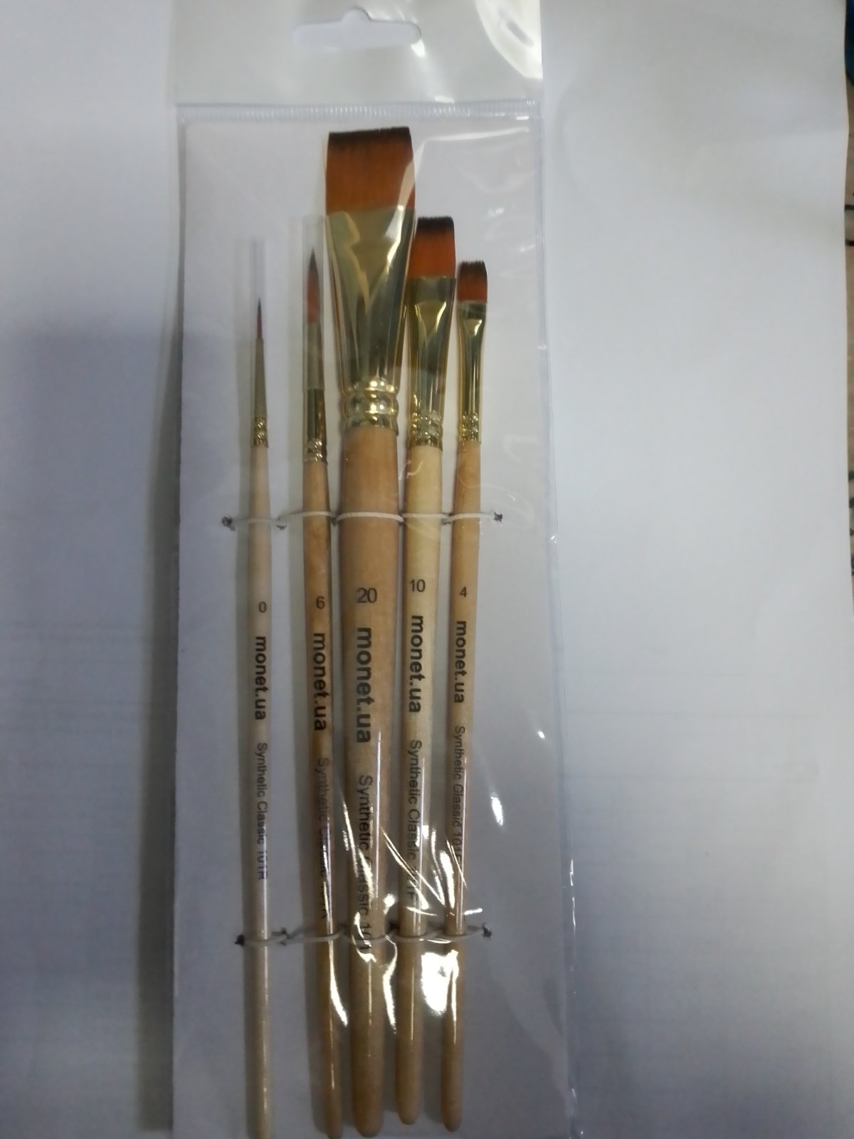 Набір пензлів синтетика Monet 5шт № 0,№6- круглі, №4,№10,№20- пласкі