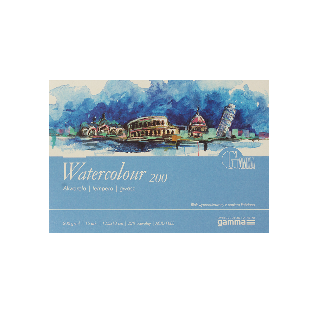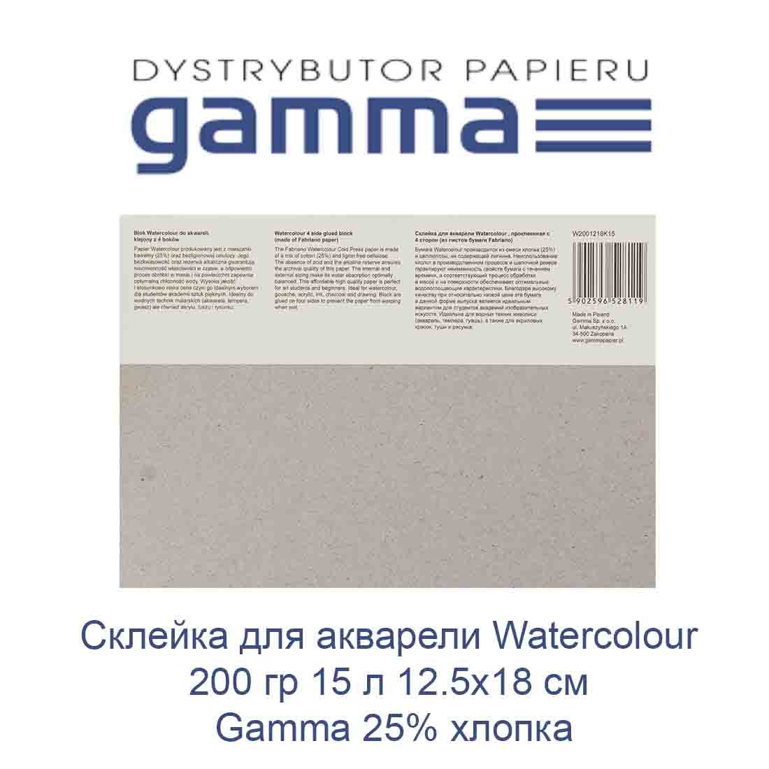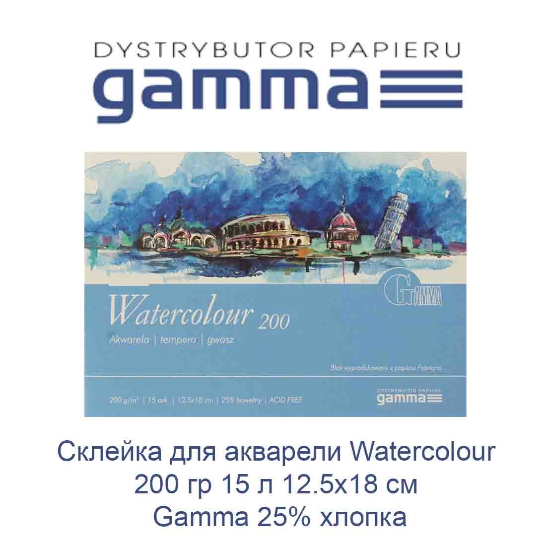 Склейка для акварелі Gamma Watercolour 25% бавовни 200 гр 15 аркушів 12.5х18