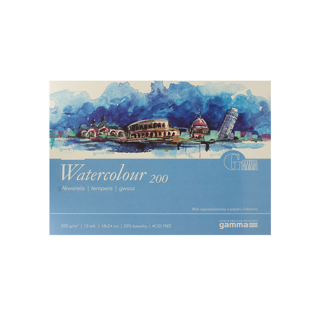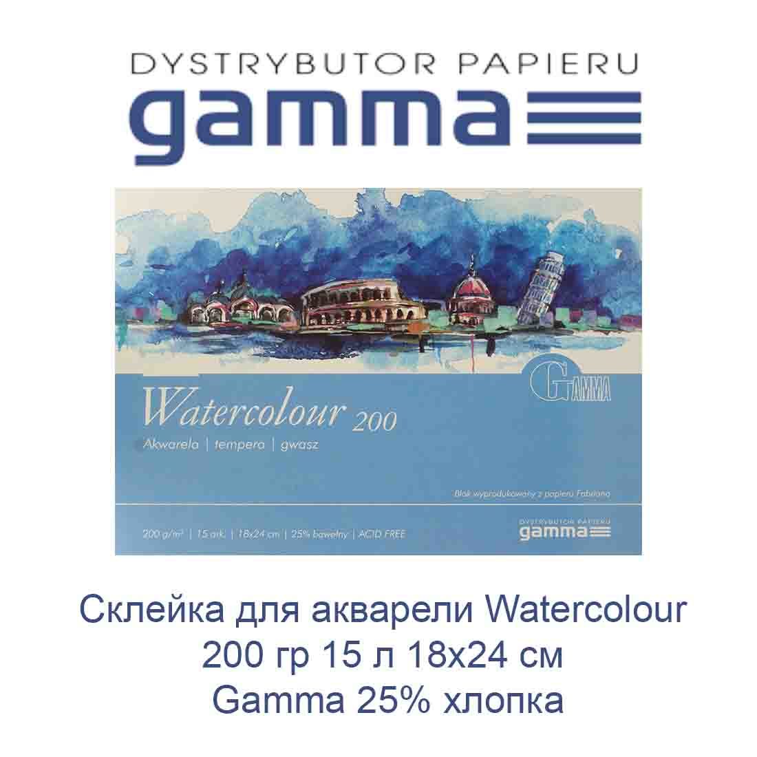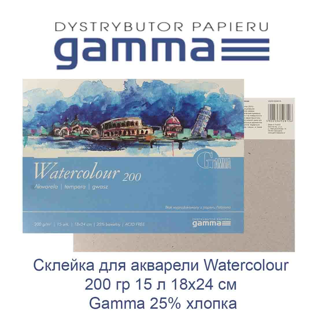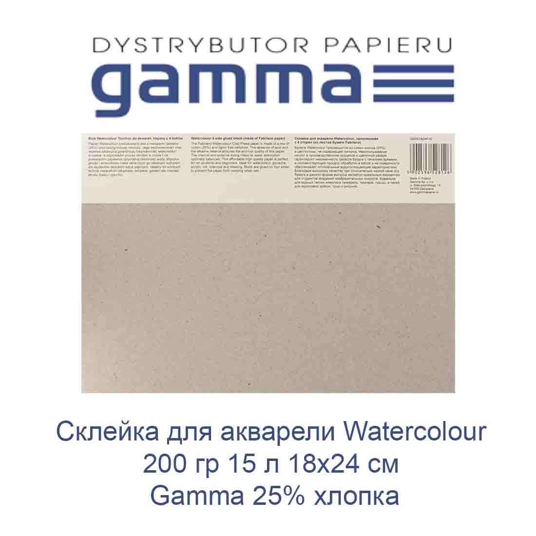 Склейка для акварелі Gamma Watercolour 25% бавовни 200 гр 15 аркушів 18х24