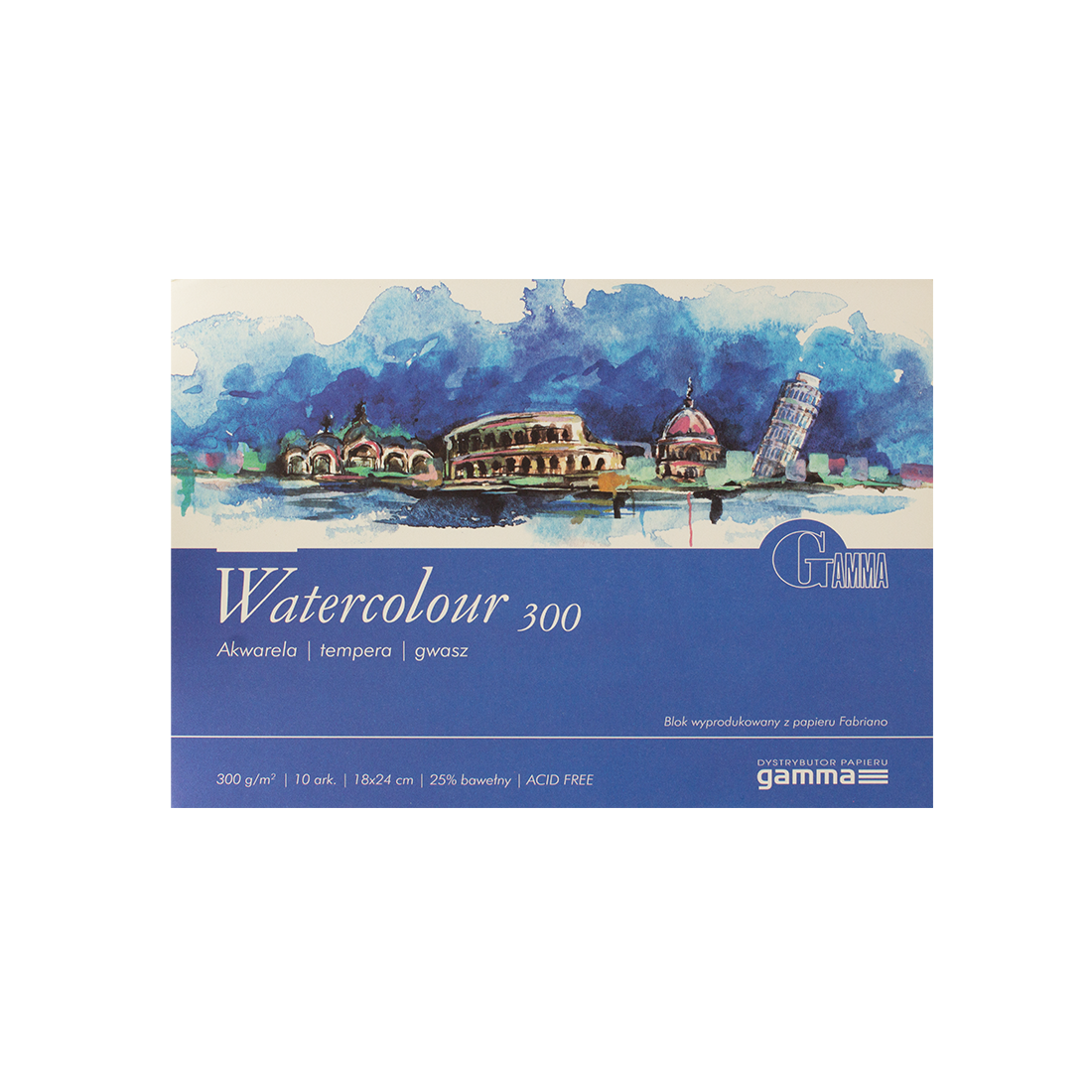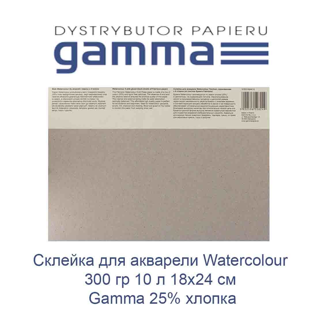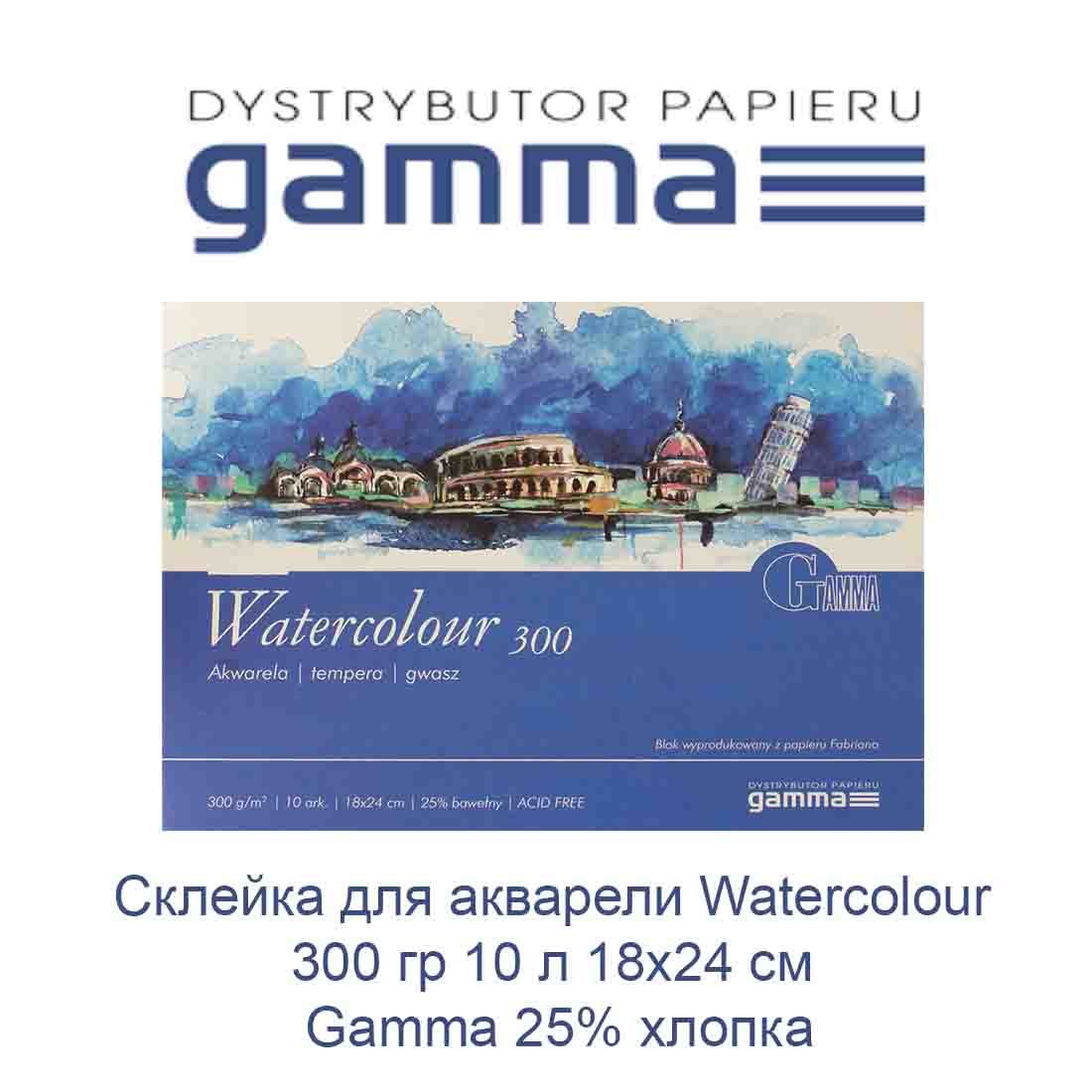 Склейка для акварелі Gamma Watercolour 25% бавовни 300 гр 10 аркушів 18х24
