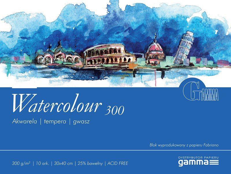 Склейка для акварелі Gamma Watercolour 25% бавовни 300 гр 10 аркушів 24х32