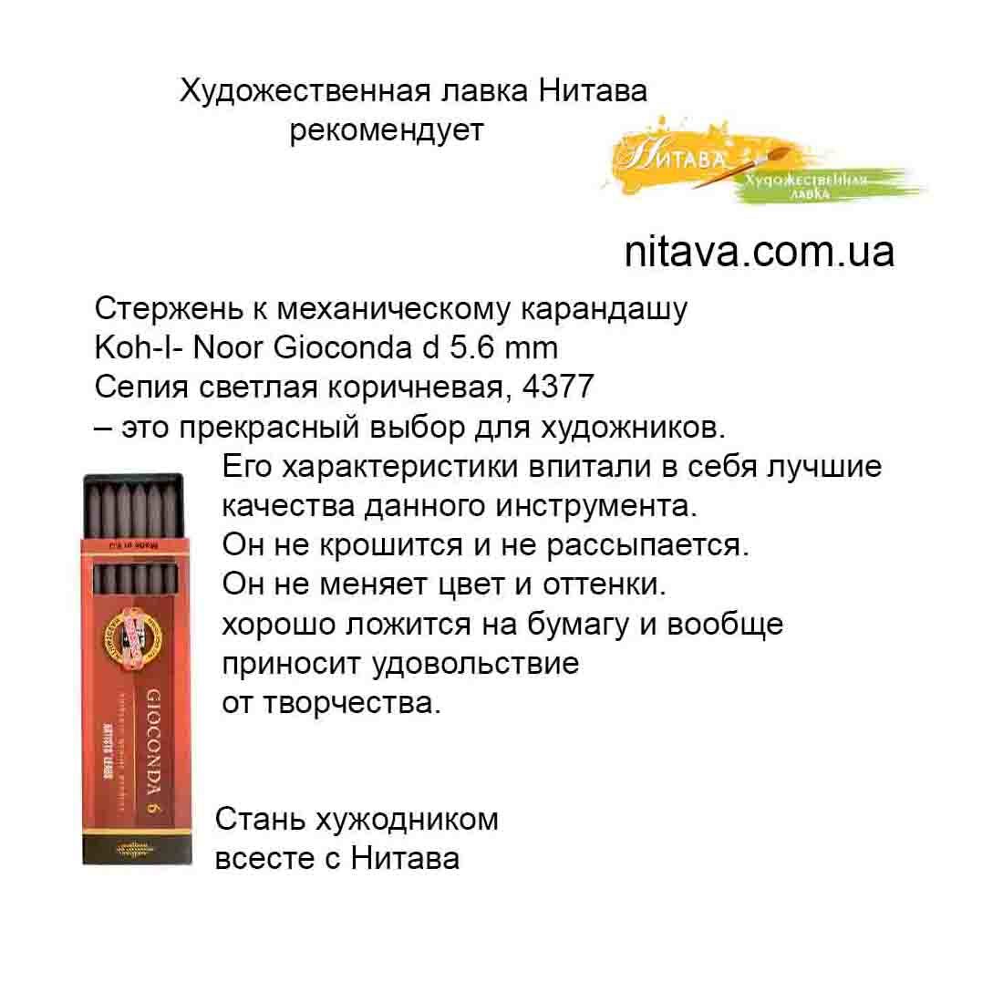 Стержень к механическому карандашу Koh-I- Noor Gioconda d 5.6 mm Сепия светлая коричневая, 4377 – это прекрасный выбор для художников.